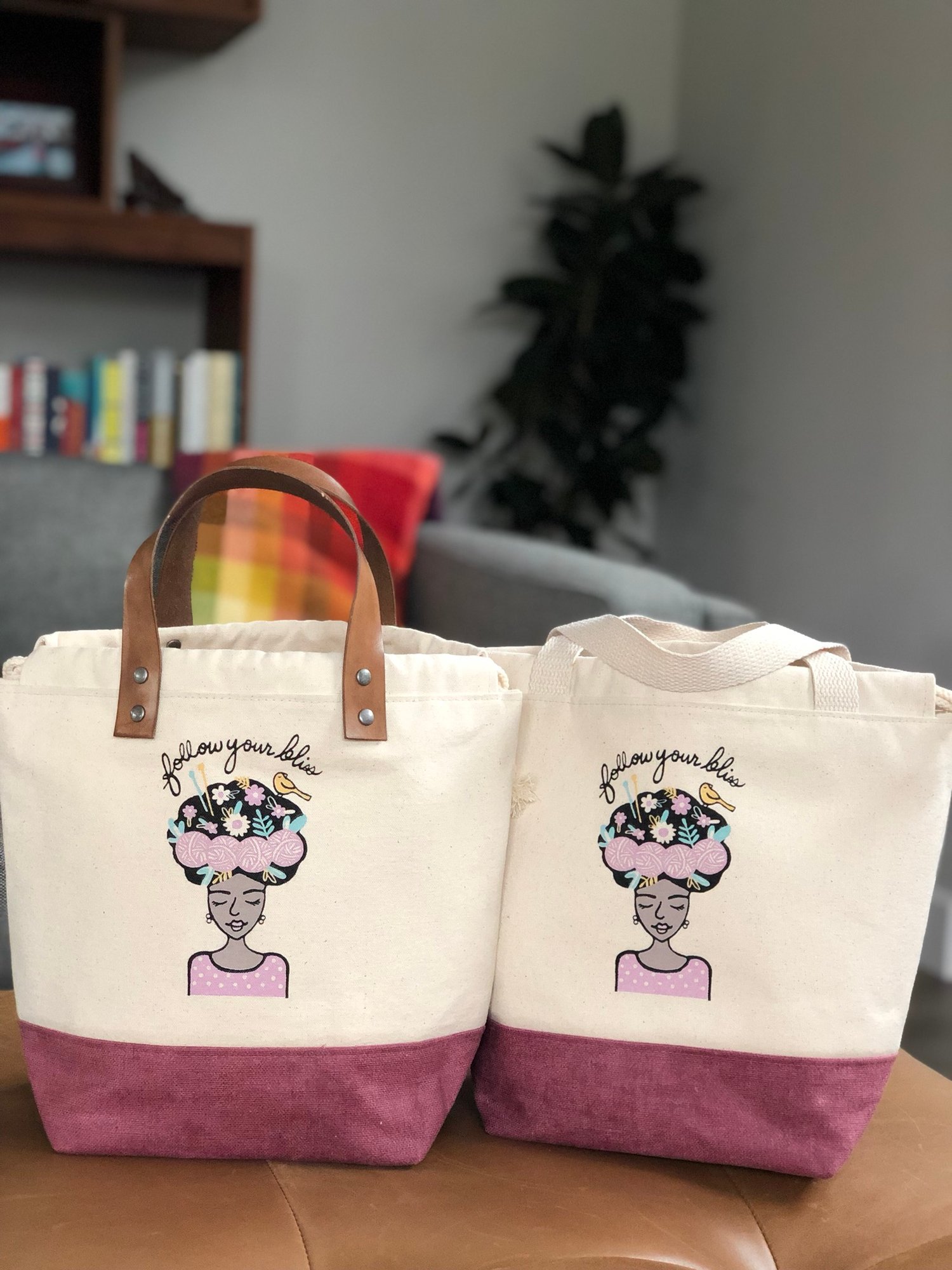 These bags were screenprinted, hand-waxed, stained (leather handles), and sewn by hand in Portland.