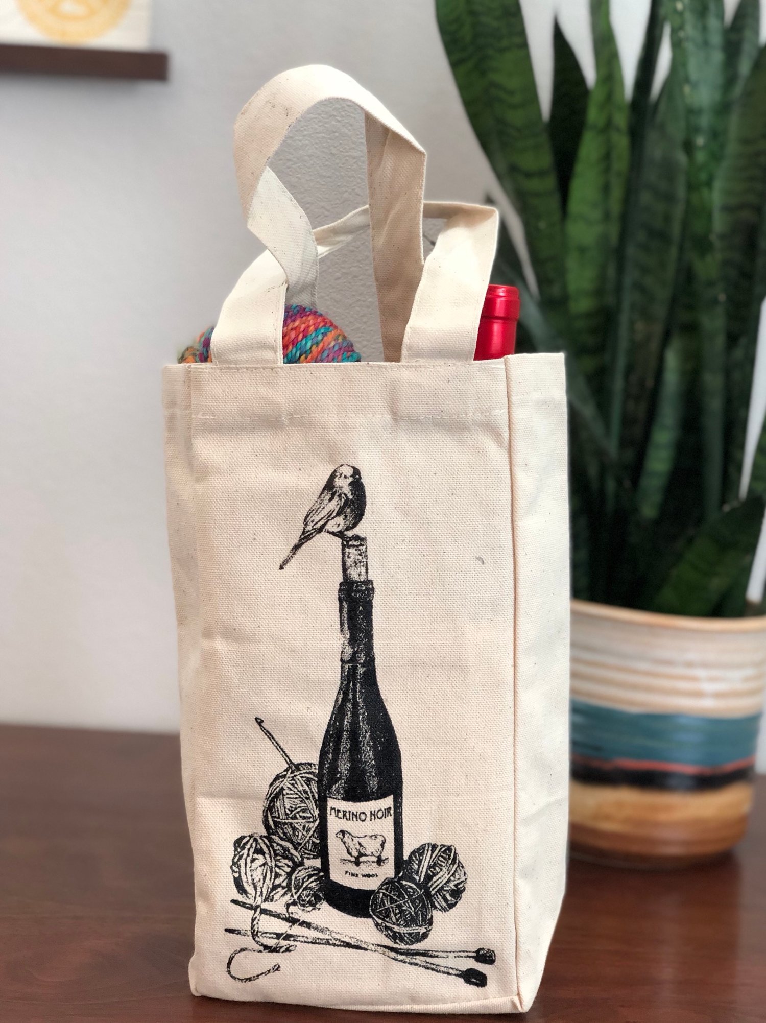It's pinot noir, I mean, merino noir! Limited edition wine bags, great for toting around both wool+wine. It's the pefect gift for your valentine/galentine and by that I mean YOU. Be your own valentine. Treat yourself.